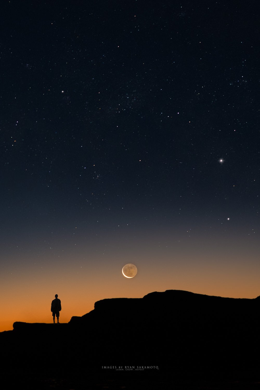 Self Portrait East side, moonrise just before Sunrise.